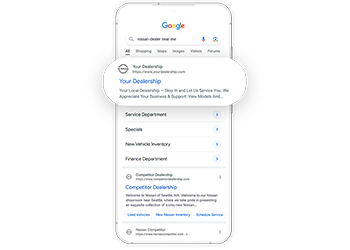Dealer eProcess delivers the SEO performance that puts your Nissan dealership on the map—and at the top of local search results. Our team fuels your site with original, lead-focused content and keyword-rich pages that drive traffic, boost visibility, and turn clicks into customers. From optimizing your Google Business Profile for Sales, Service, and Parts to managing listings and reputation, we handle the heavy lifting. With real-time keyword tracking and strategic updates, your site becomes a search engine powerhouse—without the guesswork.